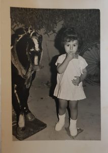 Tengo muchos. Después de un buen verano en las playas del Mar Menor, bien en Los Alcázares, bien en La Manga, venía la Feria de septiembre de Murcia y ahí tengo una foto al lado de un caballito al que mi padre siempre nos llevaba. Recuerdo que nos compró una sartén que estaba hecha de hierro con una chapa de Coca Cola chafá y su trípode. Aún la conservo. Tendrá cincuenta años.