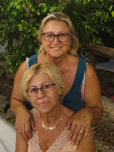 Mari Carmen (de azul) celebrando ayer el cumpleaños de su hermana Mª Dolores. Felicidades.