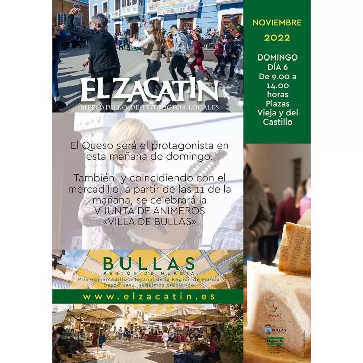Además, en esta ocasión coincidiendo con el mercadillo, a partir de las 11 horas de la mañana, se celebrará la V Junta de Animeros Villa de Bullas. Está organizada por los Animeros y Auroros de San Blas de esta localidad, con la colaboración del Ayuntamiento de Bullas y empresas locales.