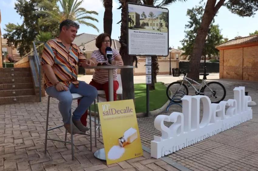 La concejal de Cultura de San Pedro del Pinatar, M.ª Carmen Guirao, y el director del festival internacional de teatro de calle Sal de Calle, Nacho Vilar, han presentado esta semana la programación de su décima edición, que vuelve tras dos años interrumpido por la pandemia y que amplía los espectáculos a nuevos espacios.