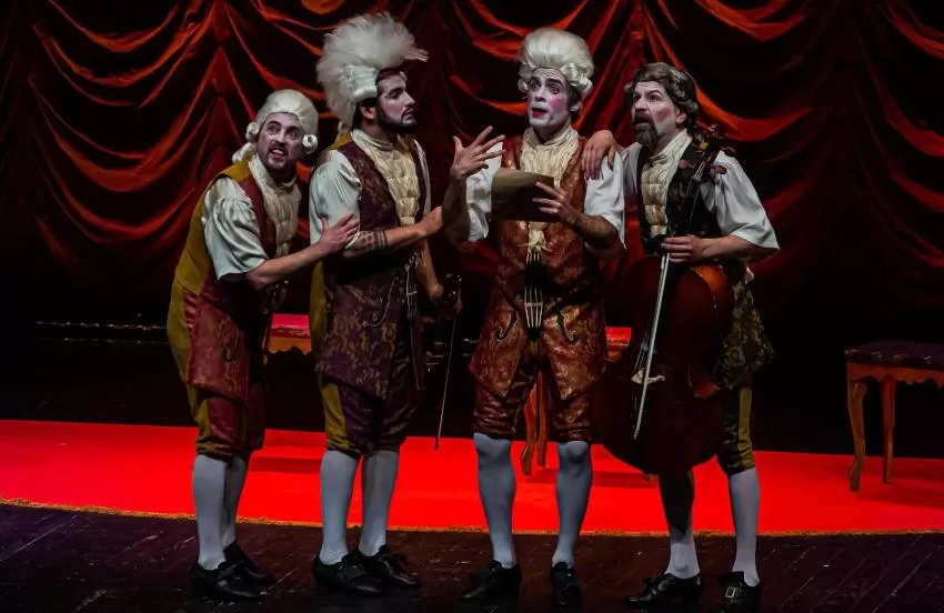 Todos los actores/músicos se conducen con una estupenda actitud escénica y cumplen con lo que se demanda de este tipo de propuesta: entretener al público. Siendo la música pieza fundamental, con los violines y un chelo al frente, este espectáculo hace un repaso sonoro a toda una serie de reconocibles melodías, fusionando temas de los siglos XVII y XVIII con melodías de este los últimos siglos, con versiones de temas de Metallica, The Police, John Williams o The Beatles.