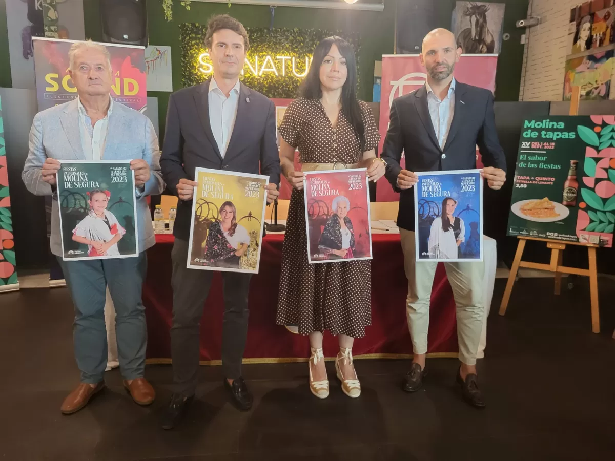 Las Fiestas de Molina de Segura 2023 arrancarán el 2 de septiembre con el pasacalles del Tío de la Chirimaita. Entre las novedades destaca este año que el recinto ferial se ubicará por primera vez en el aparcamiento disuasorio Molina Centro. Hoy, jueves 27 de julio, en Restaurante Signatura, ha tenido lugar la presentación oficial del cartel y la programación festiva, acto al que han asistido el alcalde de Molina de Segura, José Ángel Alfonso; el concejal de Festejos, Juan de Dios García, y el edil de Deporte y Salud, Carlos Perelló.