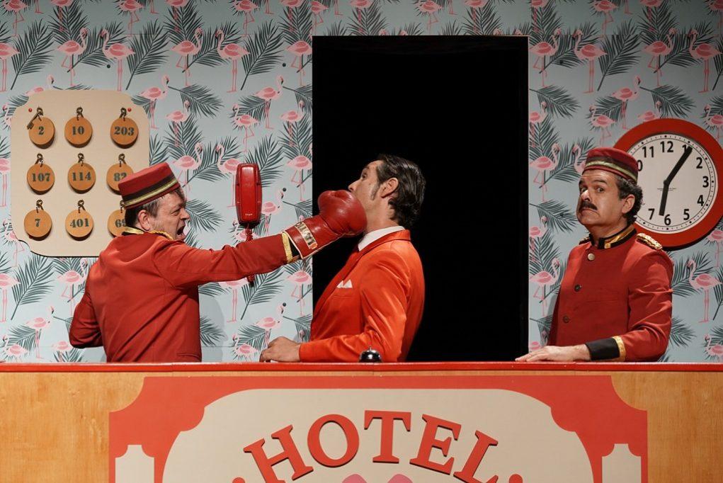 Una recepción de un hotel cuyo propietario es un visionario de los negocios, y decide reabrirlo en plena pandemia, creyendo que es el mejor momento para que se llene de turistas … Este es el hilo argumental del espectáculo Hotel Flamingo.