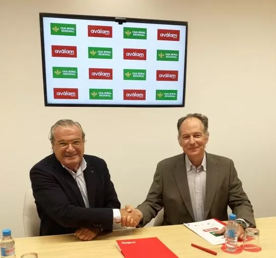 La firma, que se plasmó en la sede de Aválam, tuvo como representantes a Juan Andrés Jiménez, presidente de Caja Rural Regional, y Luis Martínez de Salas, director general de Aválam.