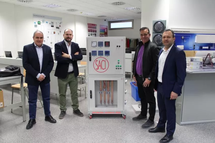 SACI (Sociedad Anónima de Construcciones Industriales) ha donado a FREMM (Federación Regional de Empresarios del Metal de Murcia) un cuadro eléctrico de entrenamiento para el control y la automatización de las instalaciones energéticas. Un equipo de última generación, desarrollado por la propia SACI, que controla todas las variables y parámetros eléctricos. Además, dispone de conexiones Ethernet y RS485 para la gestión remota.