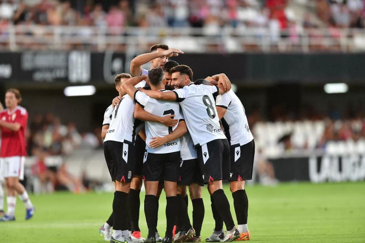 Antes del descanso llegaría el tercero del FC Cartagena. Hector Hevel lanza una falta que despeja el guardameta grana y Ortuño recoge el rechace para marcar con una gran definición.