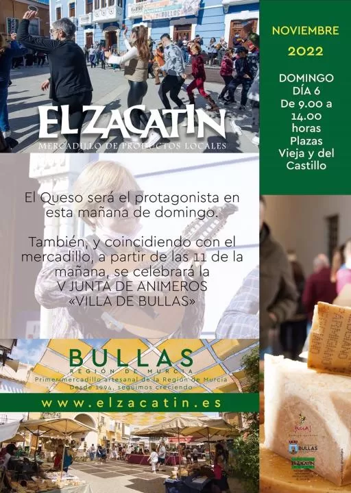 El mercadillo El Zacatín de Bullas celebra el próximo domingo, 6 de noviembre una nueva edición en la que el queso será el protagonista.