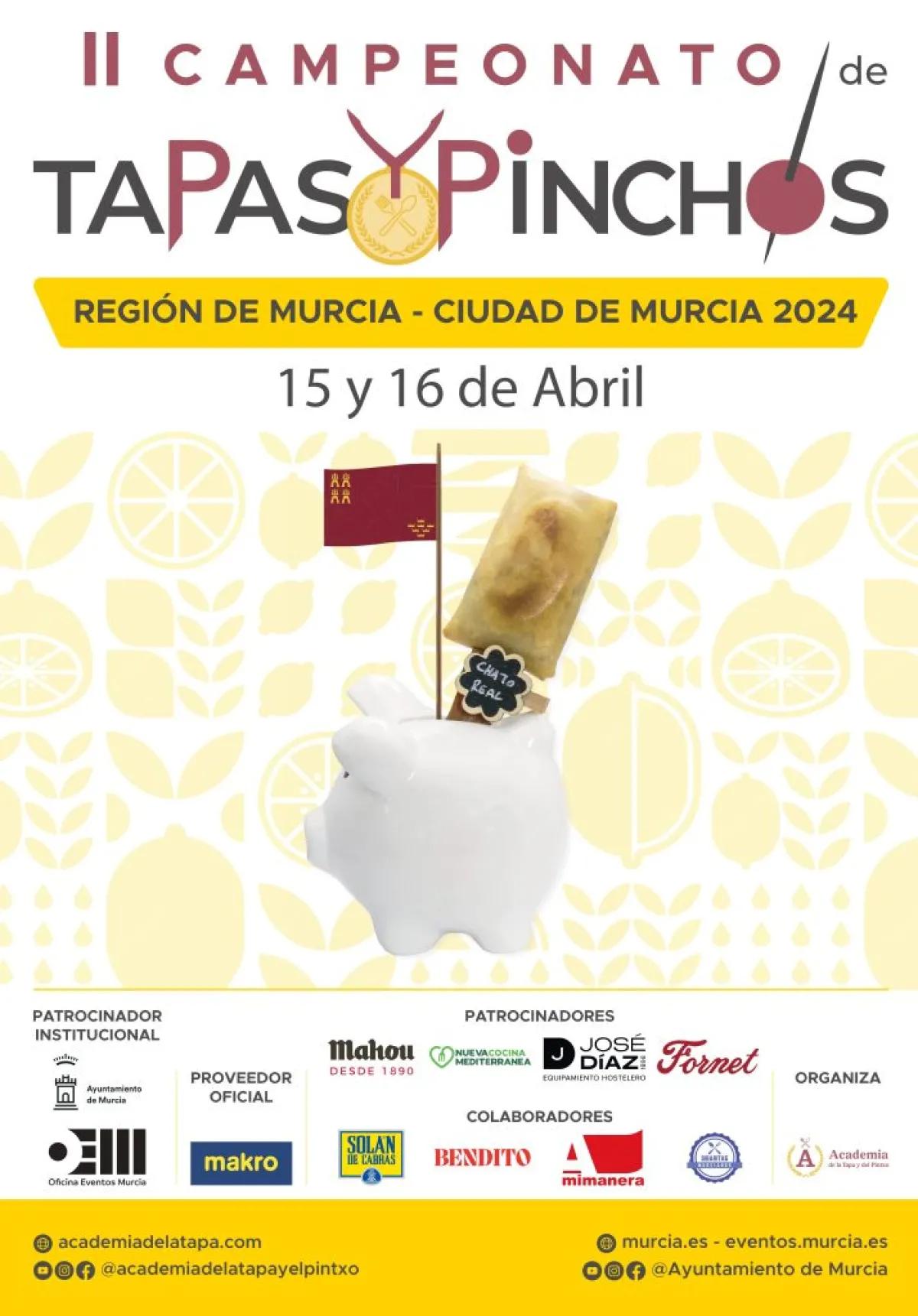 El II Campeonato de Tapas y Pinchos es un evento organizado por la Academia de la Tapa y del Pintxo e impulsado por el Ayuntamiento de Murcia. Makro es proveedor oficial del certamen, que patrocinan Mahou, Nueva Cocina Mediterránea, Fornet Equipamientos de Hostelería y Alimentación, José Díaz, Equipamiento Hostelero, Bodegas Delampa, Galicia Calidade y Grupo Intecno. Colaboran, además, Riscales Alimentación, Solán de Cabras, Bendito vermut, A Mi Manera Comunicación, Helados La Tercia, D.O.P. Yecla, Almazara San Diego, café Blackzi, ¡Eh! Escuela de Hostelería de Cáritas, Sibaritas Murcianos y 1919 Rte.