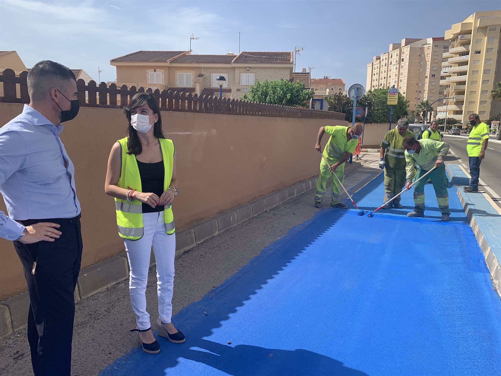 La directora general de Movilidad y Litoral, Marina Munuera, acompañada por el concejal de Turismo de San Javier, Antonio Marcelo, visitó esta semana las obras, "que avanzan a buen ritmo pues ya se ha completado la pavimentación de los tramos que unen los kilómetros 7 y 13, y prevemos finalizar los tramos que discurren por el término municipal de San Javier en julio, que incluye el pavimento, las marcas viales y el balizamiento".