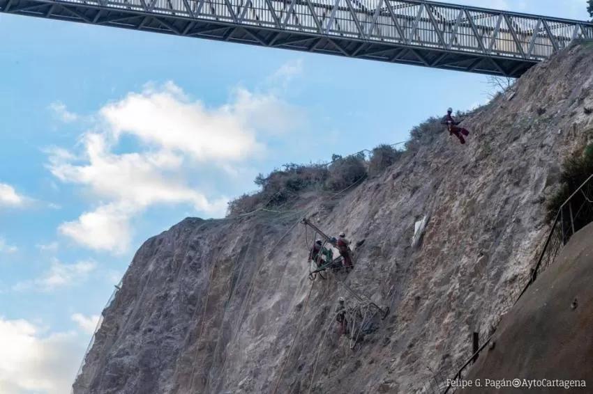 "Con esta obra vamos a conseguir la consolidación definitiva de la ladera y evitar los desprendimientos con la instalación de unas redes especiales, parecidas a las instaladas en el monte de las Casillas de El Portús, para asegurar la ladera a largo plazo", ha dicho Diego Ortega.
