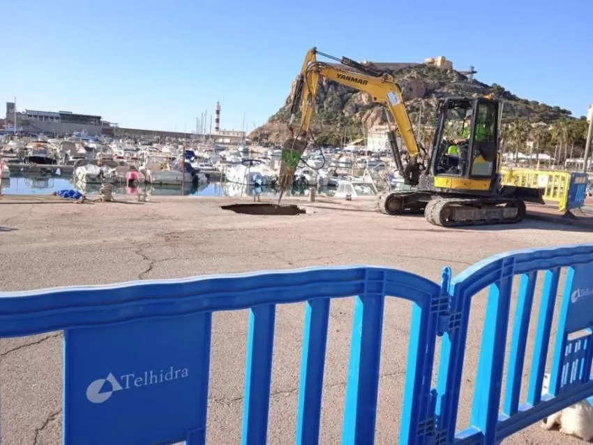 La Consejería de Fomento e Infraestructuras inicia hoy las primeras actuaciones para reparar los daños del temporal en el puerto pesquero-deportivo de Águilas con la restauración de una oquedad, así como el arreglo de la línea de alumbrado en la zona de aparcamiento junto a la dársena.