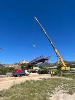 La estructura metálica de la nueva pasarela peatonal que permitirá a los peregrinos acceder desde el Camino de Levante a Caravaca de la Cruz por el Barranco de San Jerónimo, a través de un trazado menos urbanizado y más cómodo y seguro, ya está instalada.