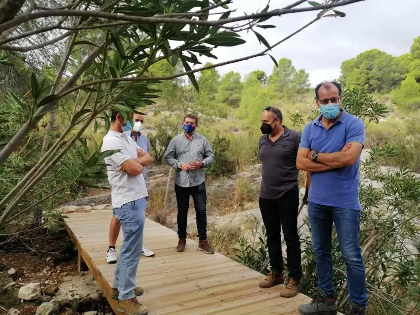 El director general de Medio Natural, Fulgencio Perona, ha visitado este miércoles el sendero para comprobar el resultado de los trabajos que han consistido en la adecuación de la calzada, la instalación de un puente de madera que cruza la rambla de la Higuera y la colocación de cartelería interpretativa, normativa y direccional.