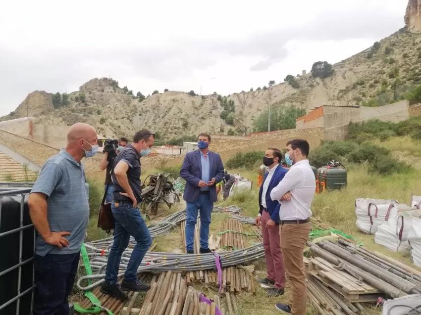 La sujeción sobre el terreno de un bloque de 800 toneladas que se encuentra en voladizo y amenaza con desprenderse, en los montes situados al este del municipio de Ulea, es el objeto de los trabajos puestos en marcha esta semana por la Consejería de Agua, Agricultura, Ganadería, Pesca y Medio Ambiente, que han contado este miércoles con la visita del director general del Medio Natural, Fulgencio Perona, para conocer la actuación sobre el terreno.