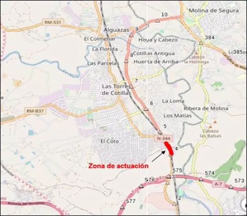 Las obras proyectadas pretenden permitir todos los movimientos en la intersección, de forma que la seguridad quede garantizada, así como disminuir los tiempos de retención tanto en la N-344, como en la incorporación a esta carretera desde Las Torres de Cotillas.