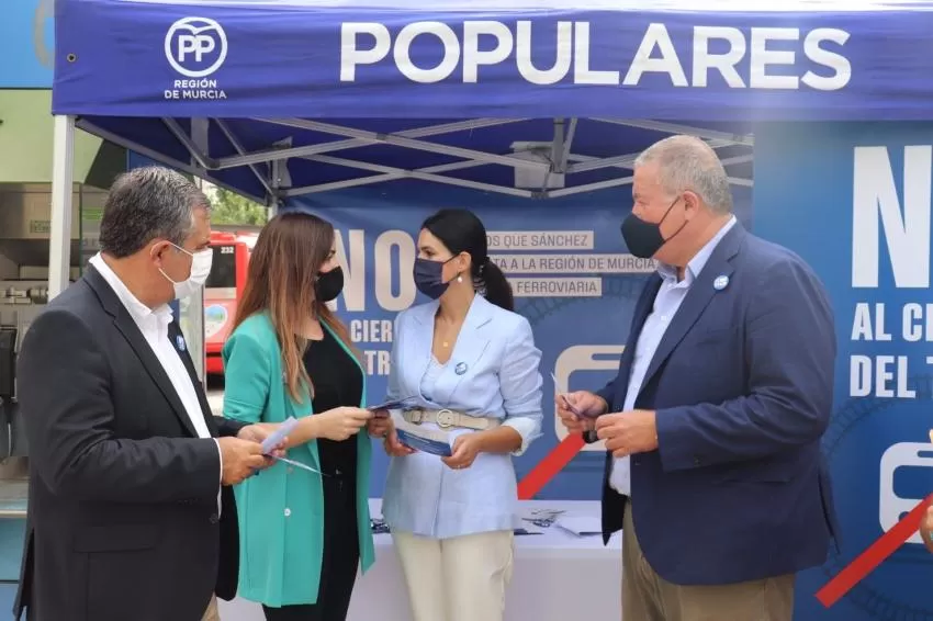 La portavoz 'popular' ha hecho esta denuncia desde la Estación del Carmen, junto con la portavoz del PP en el Ayuntamiento de Murcia, Rebeca Pérez, y el concejal del PP, Antonio Navarro, los senadores, Juan María Vázquez y Francisco Bernabé, en una de las carpas que el Partido Popular de la Región de Murcia ha instalado en los distintos municipios afectados por el cierre de los trenes en las que se explican las alternativas que hay para simultanear los servicios.