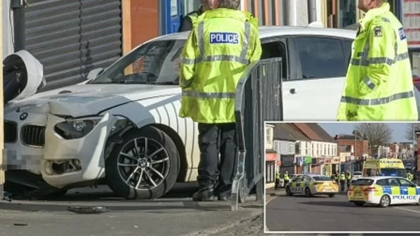 Los medios de comunicación ingleses se hicieron eco de la noticia y mostraron las imágenes del suceso donde se ve la parte delantera del coche destrozada.
