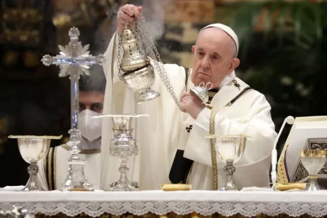 Tras la lectura del Evangelio en latín y griego, el Papa no ha pronunciado la homilía, pero, junto a la asamblea de concelebrantes se ha detenido unos momentos en silencio para la reflexión sobre la Resurrección de Cristo.