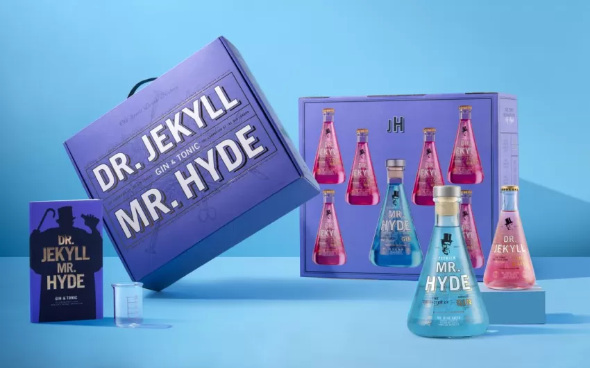 Dr. Jekyll y Mr. Hyde es un proyecto 100 % español –la ginebra se elabora en una destilería centenaria de Granada y la tónica en Valencia– que concentra seis años de trabajo intenso y que está llamado a dejar huella en el mundo de los espirituosos. Nacido del sueño de un visionario, en su materialización han participado diversos talentos: desde un diseñador de prestigio mundial hasta un Nariz de Oro, responsable de una receta única que ha sido posible tras nada más y nada menos que 80 formulaciones previas.