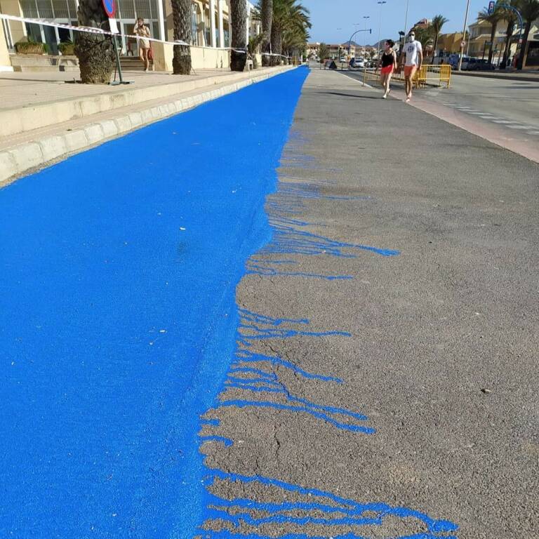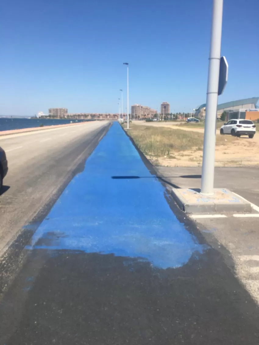 Las siguientes quejas llegaron cuando se comparaba el carril bici en la zona de Cartagena de La Manga con el de la zona de San Javier. Los vecinos aseguran que "no tiene nada que ver". En algunas zonas es un simple arcén pintado de azul, donde difícilmente se pueden cruzar dos bicicletas.