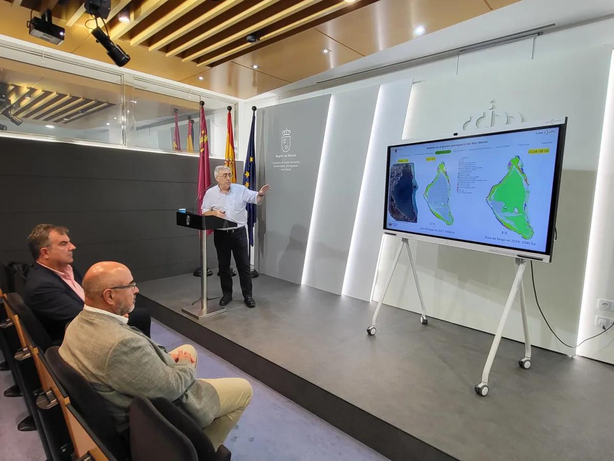 Vázquez subrayó que “se evidencia no solo una recuperación de la cobertura vegetal del fondo, sino una ampliación del bosque marino, pese a las eventualidades climáticas como la dana de 2019, que supuso la regresión del 90 por ciento de las praderas que se han recuperado”.