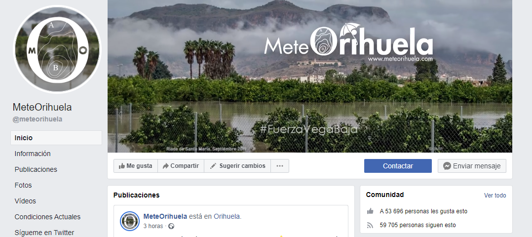 De la mano de Pedro José Gómez Cascales nos encontramos en redes con 'MeteOrihuela'. Una página donde podemos localizar toda la información de la Vega Baja totalmente actualizada.