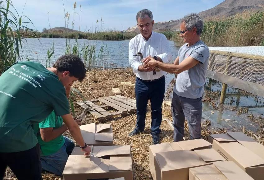 Así lo ha dicho este viernes el consejero de Medio Ambiente, Mar Menor, Universidades e Investigación, Juan María Vázquez, durante la primera de las liberaciones de ejemplares en el jaulón de aclimatación construido al efecto en este humedal de Mazarrón, la Laguna de Las Moreras.