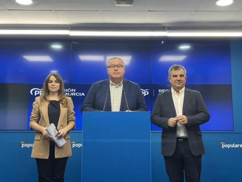 Esta mañana, la coordinadora general del PP y portavoz del PP en el Ayuntamiento de Murcia, Rebeca Pérez, junto con los senadores Francisco Bernabé y Juan María Vázquez, han ofrecido una rueda de prensa sobre la aprobación de los Presupuestos Generales del Estado y su tramitación en las Cortes Generales