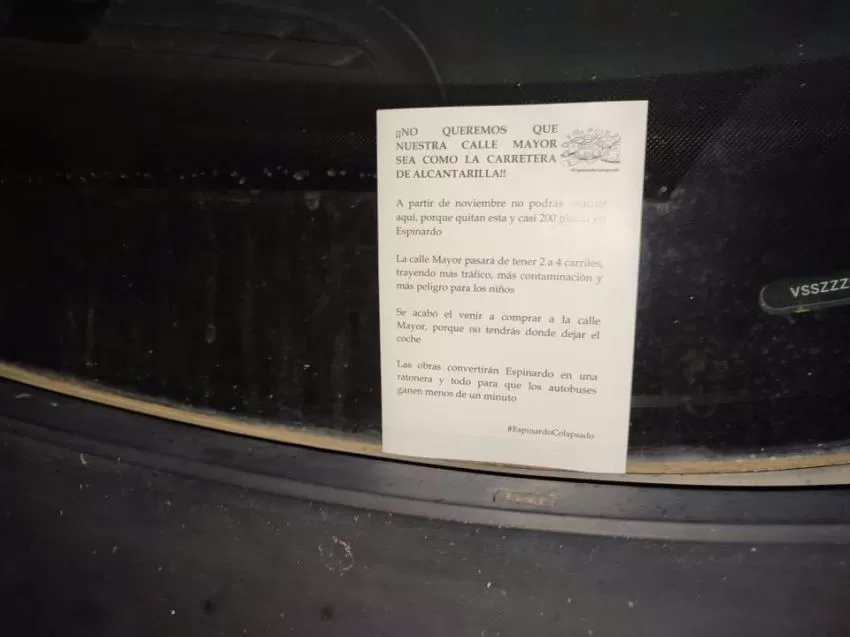 Esta vía, han señalado, "es el alma de Espinardo, por ella pasean y compran niños y mayores, que ahora verán como los vehículos invaden todo y traerán más intranquilidad ante el incremento del riesgo de atropellos". A esto, han sumado que "desaparecerán casi 200 aparcamientos, haciendo más difícil que vengan a comprar o tomarse algo desde Joven Futura, Los Rectores o El Puntal".