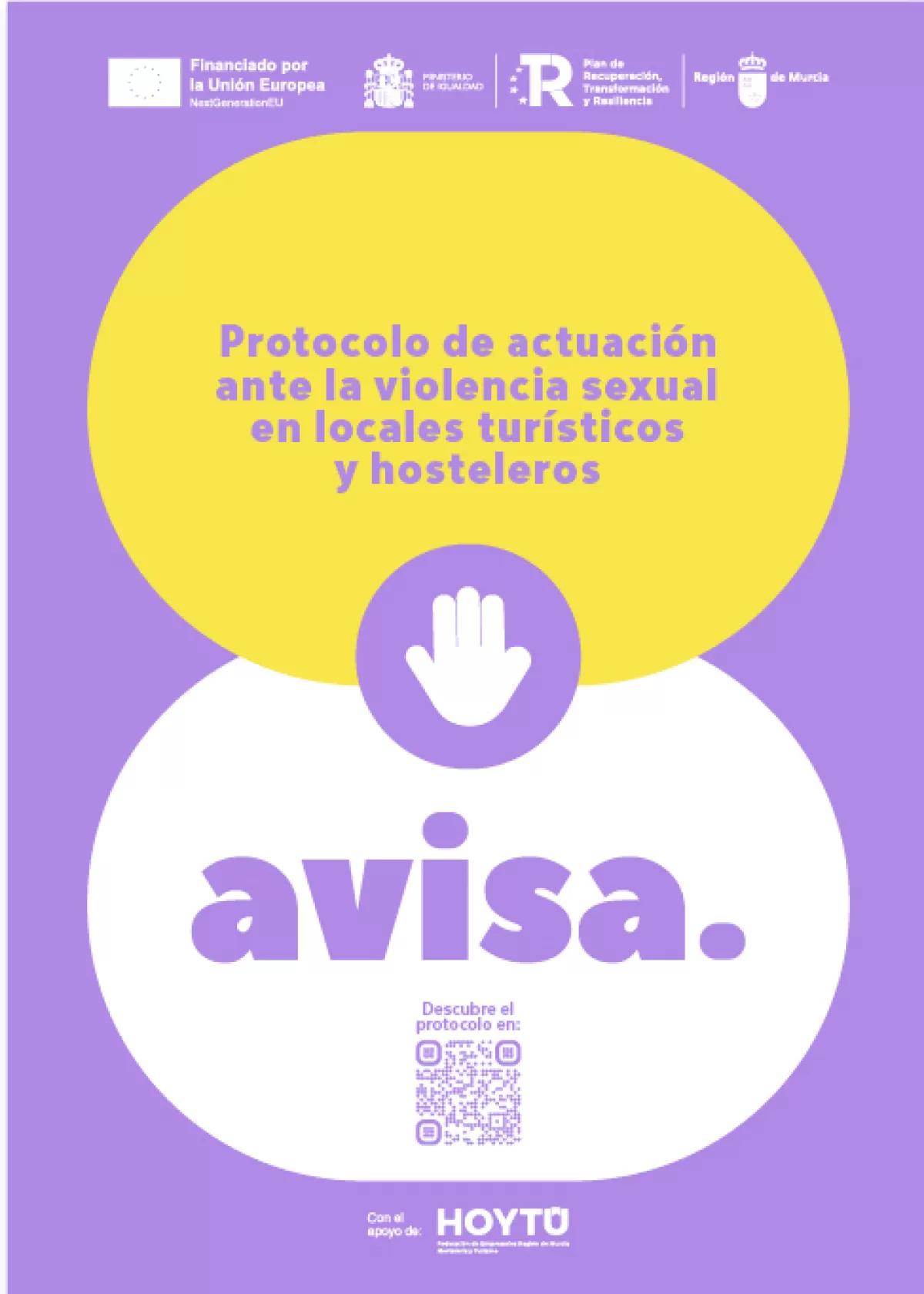 El protocolo 'Avisa' recoge de forma clara y didáctica las medidas aplicables directamente por las empresas adheridas, además de información para los usuarios y clientes de los establecimientos, así como otras medidas complementarias. Fue consensuado con la Federación Regional de Empresarios de Hostelería y Turismo de la Región (HoyTu) y está abierto a todos los establecimientos de hostelería y ocio de la Región, así como a los grandes eventos que puedan celebrarse.