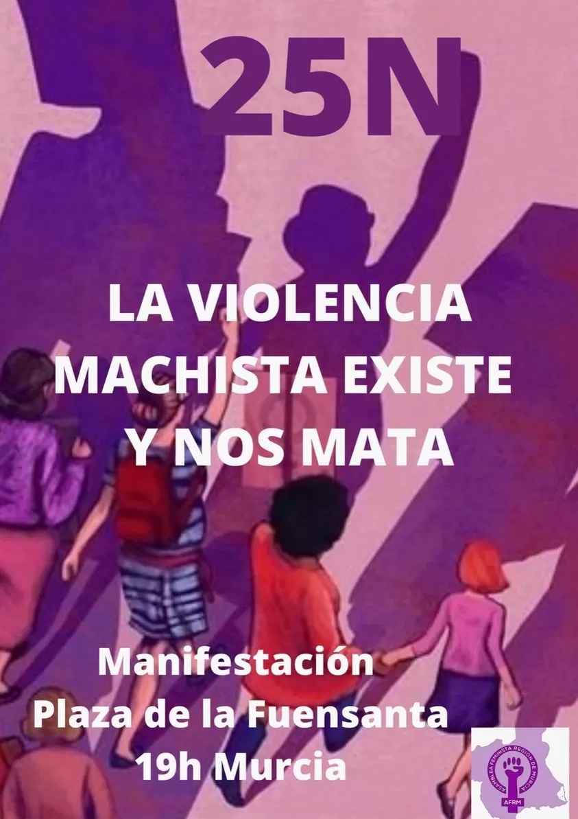 La Asamblea Feminista de la Región ha convocado una manifestación para el próximo 25 de noviembre, Día Internacional de la Eliminación de la Violencia contra las Mujeres, a las 19.00 horas, en la plaza de la Fuensanta de Murcia, bajo el lema 'La violencia machista existe y nos mata', informaron fuentes de la organización en un comunicado.