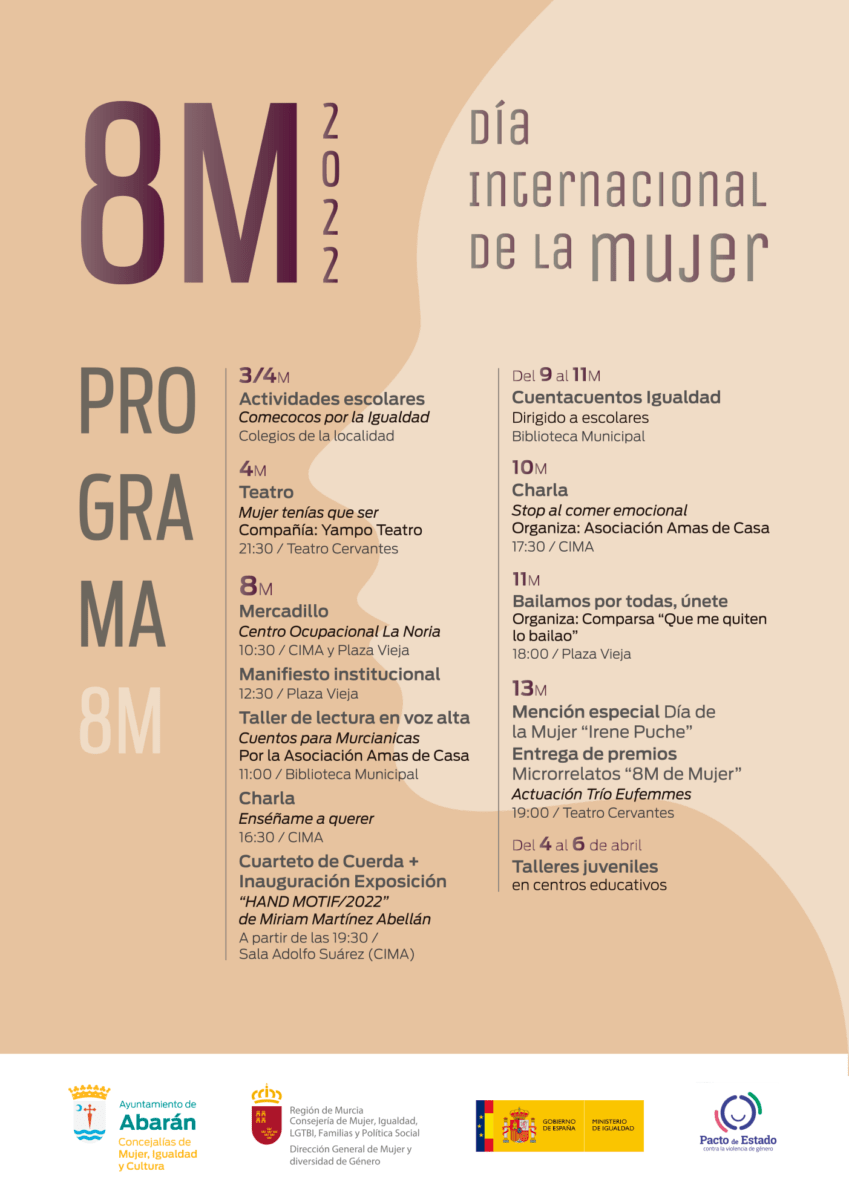La Concejalía de Mujer e Igualdad del Ayuntamiento de Abarán presenta para esta semana una amplia programación con actividades para todas las edades entre los que se incluyen charlas, talleres de lectura y bailes de comparsa. Aquí puedes consultar todos los actos organizados.
