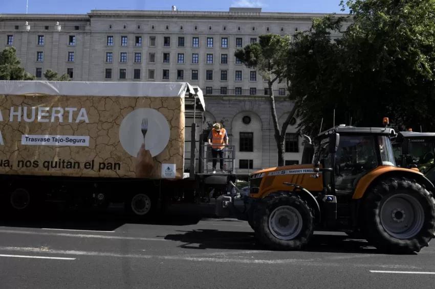 La escalada de protestas se hizo efectiva este lunes, cuando regantes, agricultores, tractoristas, camiones y ciudadanos del Levante, se trasladaron a Madrid para protestar frente a la sede del Ministerio y manifestarse desde Ifema al Paseo de la Castellana en 1.500 vehículos y 15 camiones (frente a los más de 200 previstos inicialmente) después de que la Delegación del Gobierno bloqueara la protesta durante casi dos horas y finalmente limitase a 15 los camiones.