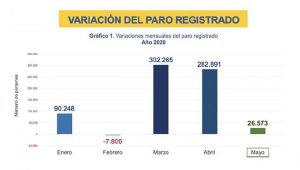 Por sectores económicos, el desempleo registrado respecto a abril desciende en la construcción, en 23.717 personas (-6,89%) y en la industria con 262 personas paradas menos (-0.08%).