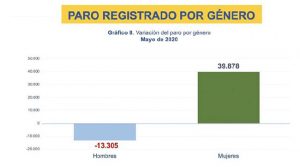 El desempleo masculino se sitúa en 1.666.098 personas, al bajar en 13.305 personas (-0,79%). El número de trabajadoras en paro, sin embargo, se incrementa en 39.878 (1,85%) personas respecto al mes anterior y deja el registro de desempleo femenino en 2.191.678 trabajadoras, que se debe a la afectación por sectores.
