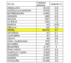 El paro registrado baja en siete comunidades autónomas encabezadas por Andalucía (-9.210), Castilla La Mancha (-5.075) y Extremadura (-4.056). Sube, en cambio, en las diez restantes. Sobre todo, en Cataluña (15.339), Madrid (14.336) y Canarias (6.093).