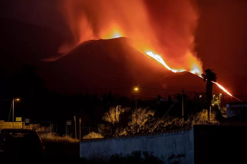 La mayor parte del magma de la erupción volcánica de Cumbre Vieja fluye al sur de la montaña de La Laguna, en Los Llanos de Aridane, y afecta a nuevos terrenos, informa el Cabildo de La Palma con datos actualizados de la dirección de emergencia del Pevolca.