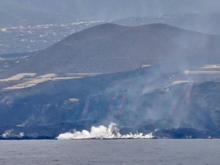 La nueva fajana formada en la playa de Los Guirres, al sur de la anterior creada por la colada primigenia, continúa su crecimiento con gran aporte lávico. Esta fajana se localiza en el centro de otras dos, ya que al norte se sitúa la que creó el volcán San Juan en su última erupción.