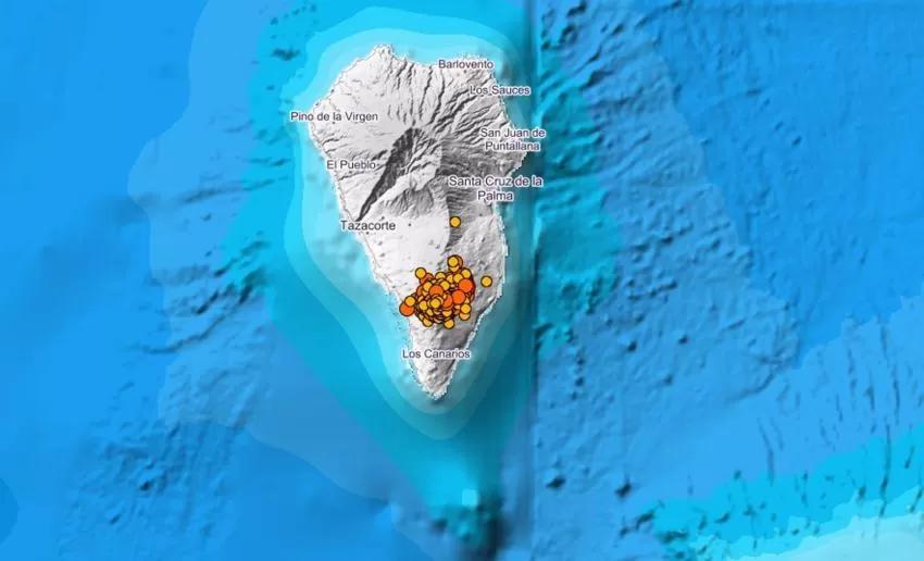 El Instituto Geográfico Nacional (IGN) ha localizado desde la pasada medianoche más de 60 terremotos en La Palma, siendo el de mayor magnitud el registrado a las 06.19 horas de este miércoles al alcanzar 4,6 en el municipio de Mazo, de intensidad IV-V, y a una profundidad de 38 kilómetros.