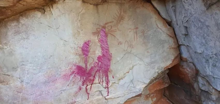 Las pinturas rupestres del abrigo de Los Órdagos, en el Parque Natural de Despeñaperros y conocidas como Las Sacerdotisas, se encuentran cubiertas por pintura rosa de spray, algo que el Ayuntamiento de Santa Elena (Jaén) ha tachado de "acto vandálico".