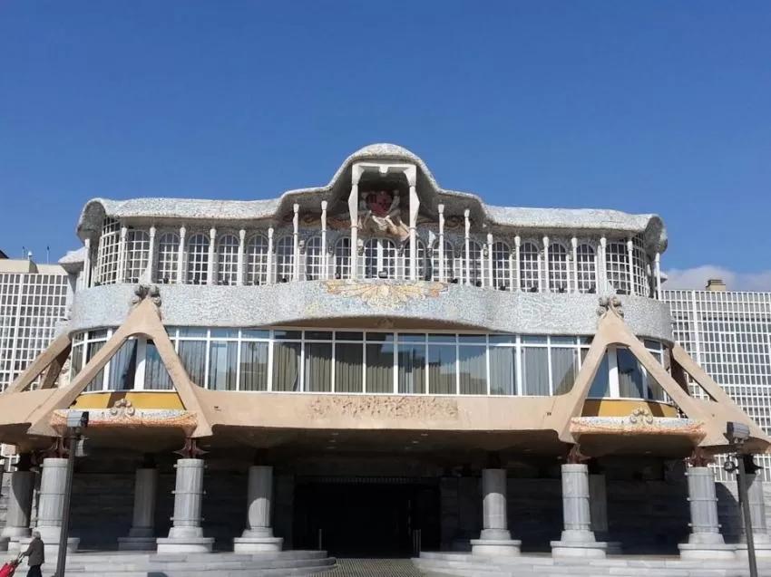 Cabe destacar la fachada, presidida en su segunda planta con una escultura de Ardid, alegórica a la Región de Murcia ubicada en una logia ornamentada con profusa azulejería y amplias zonas acristaladas. El exterior del edificio está circundado por un muro con representaciones alusivas a los distintos municipios de la Región de Murcia.