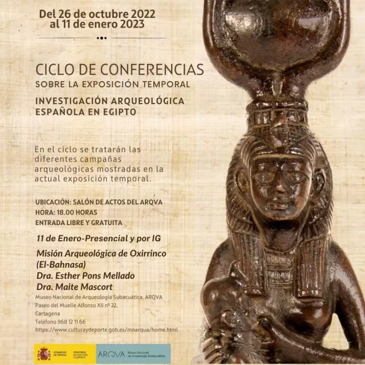 La charla tendrá lugar en el Museo de Arqueología Subacuática (ARQVA), museo de titularidad estatal perteneciente al Ministerio de Cultura y Deporte. Con este acto concluirá el ciclo de conferencias en torno a la exposición 'Investigación Arqueológica Española en Egipto'.