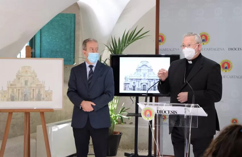 La Diócesis de Cartagena ha presentado este lunes el proyecto de restauración de la fachada principal de la Catedral de Murcia, una obra valorada en más de un 1,2 millones de euros y que se realizará en un plazo mínimo de 10 meses, según ha explicado el arquitecto responsable del proyecto, Juan de Dios de la Hoz.