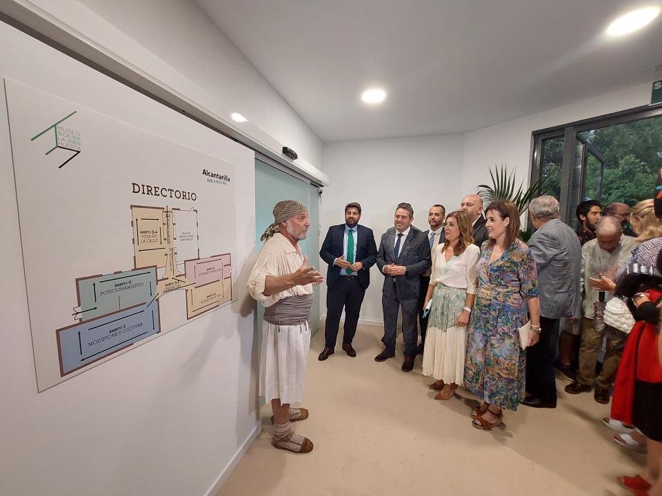 El alcalde de Alcantarilla, Joaquín Buendía, y el presidente del Gobierno regional, Fernando López Miras, inauguraron oficialmente el nuevo interior del museo, que está dividido en cinco salas, más una sala de exposiciones temporales y un almacén visitable.