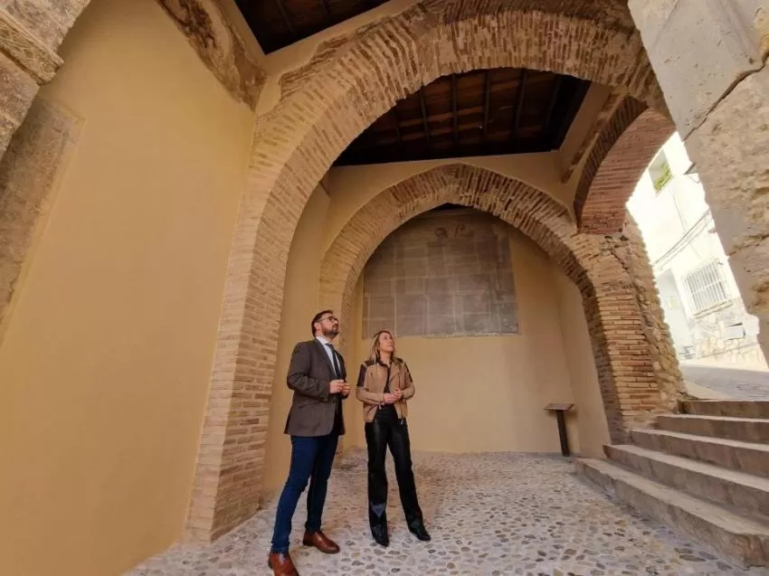 El alcalde de Lorca, Diego José Mateos, y la concejala de Patrimonio Histórico, María Ángeles Mazuecos, han visitado el porche de San Antonio tras la reciente intervención realizada debido a las incidencias provocadas por las lluvias del pasado mes.