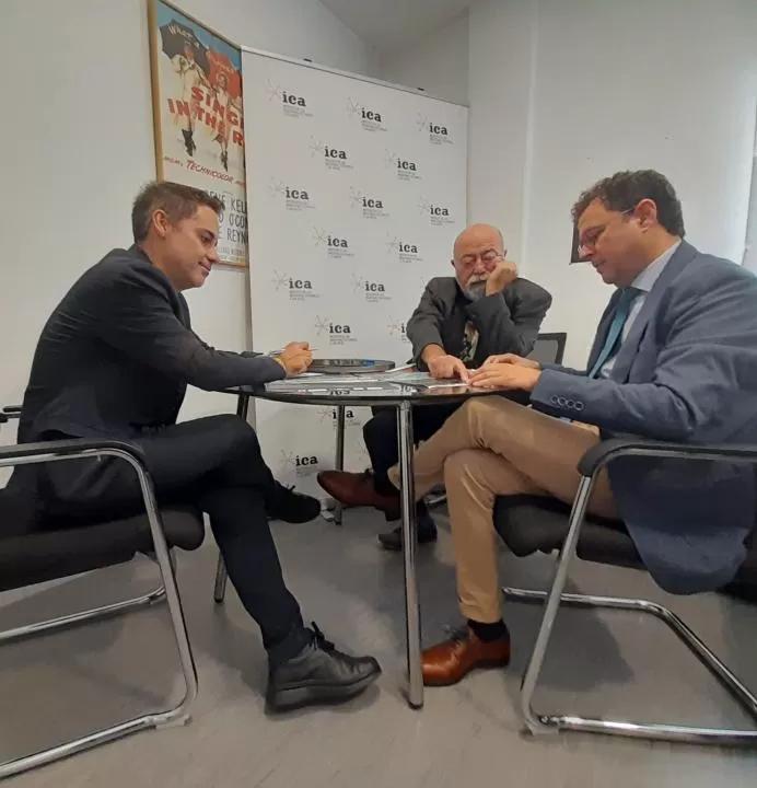 El director general del ICA, Manuel Cebrián, y el profesor de la UMU, Joaquín Cánovas, se reunieron hoy para preparar estos encuentros de gran interés científico y didáctico. Tras la reunión de trabajo, Manuel Cebrián se refirió a la estrategia del ICA de promoción de la producción audiovisual.