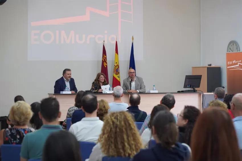 La consejera de Educación, María Isabel Campuzano, acompañada por el director general de Formación Profesional e Innovación, Juan García, ha asistido a la inauguración del curso en la EOI de Murcia. En su intervención, la titular del ramo recordó que "en nuestras escuelas se pueden aprender siete idiomas: alemán, árabe, chino, español para extranjeros, francés, inglés e italiano".