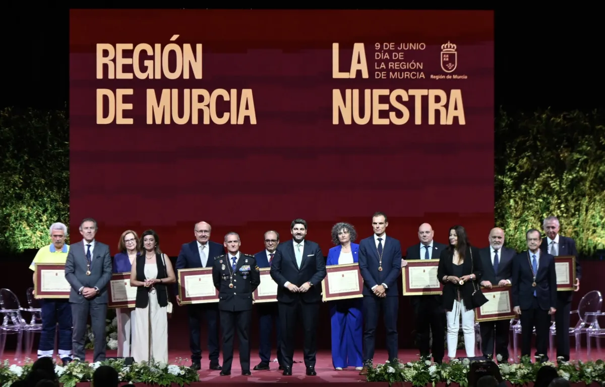 Como cada año, el acto incluyó la entrega de las Medallas de Oro de la Región de Murcia y los Diplomas de Servicios Distinguidos a diferentes personalidades y entidades de la Región que han destacado por su trayectoria en diferentes ámbitos, como el cultural, el empresarial, el científico, el artístico, el educativo o el deportivo.