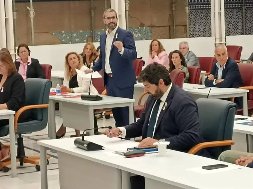 "Lo que nos avergüenza son los enchufes en las listas de espera; la dimisión de los científicos del Comité del Mar Menor; el bloqueo permanente del Consejo de la Transparencia de la Región; y la historia de la corrupción del PP y los 27 años de historia de su Gobierno en la Región", según Lucas.