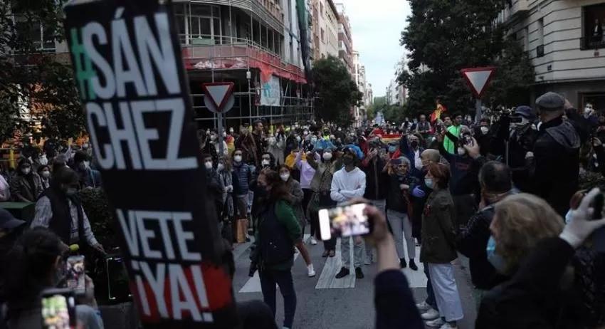 Cientos de personas se manifestaron en la calle Núñez de Balboa del barrio de Salamanca, en Madrid, para protestar por la gestión del coronavirus del gobierno encabezado por Pedro Sánchez. Saltándose totalmente el Estado de Alarma y las medidas de seguridad establecidas, asistieron a la protesta y fueron destacados por los medios. Martínez-Almeida, alcalde de Madrid, calificó la acción como "medida de protesta pacífica".